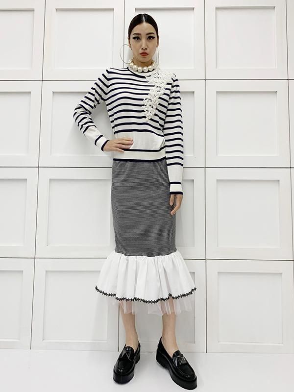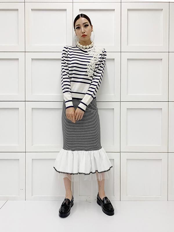 カジュアルな印象のボーダーをエレガントに着こなせるので、大人カジュアルにピッタリ。