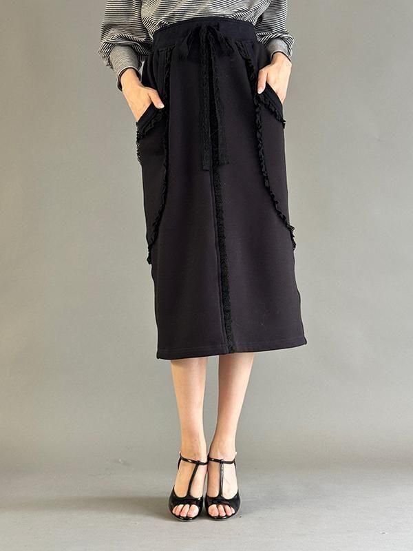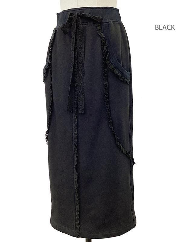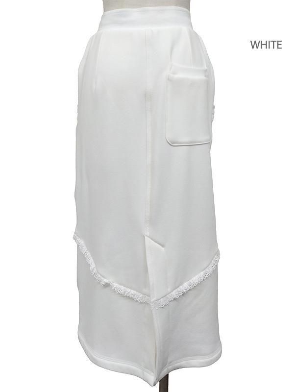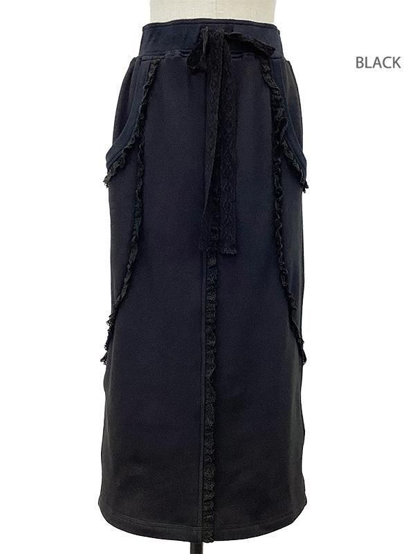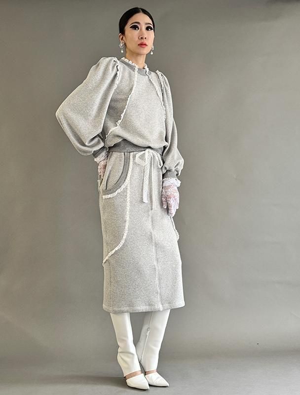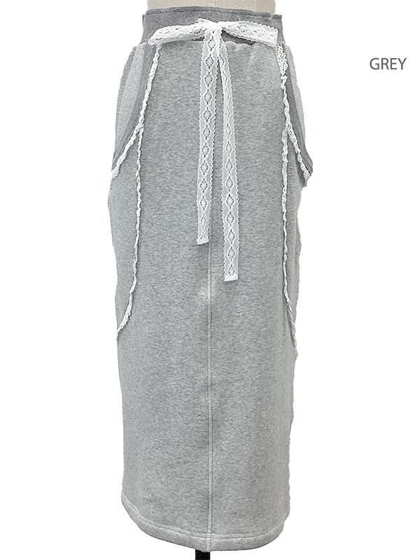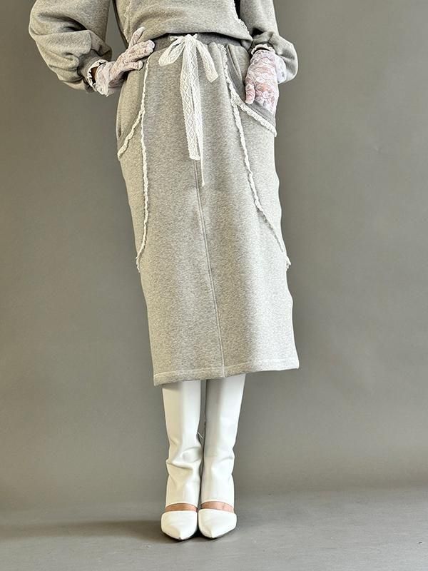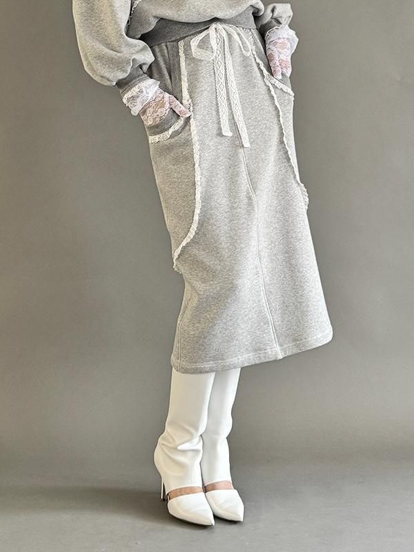 ベーシックになりがちなスウェットも、ウエストやポケット回りのレースデザインでぐっとフェミニンに。