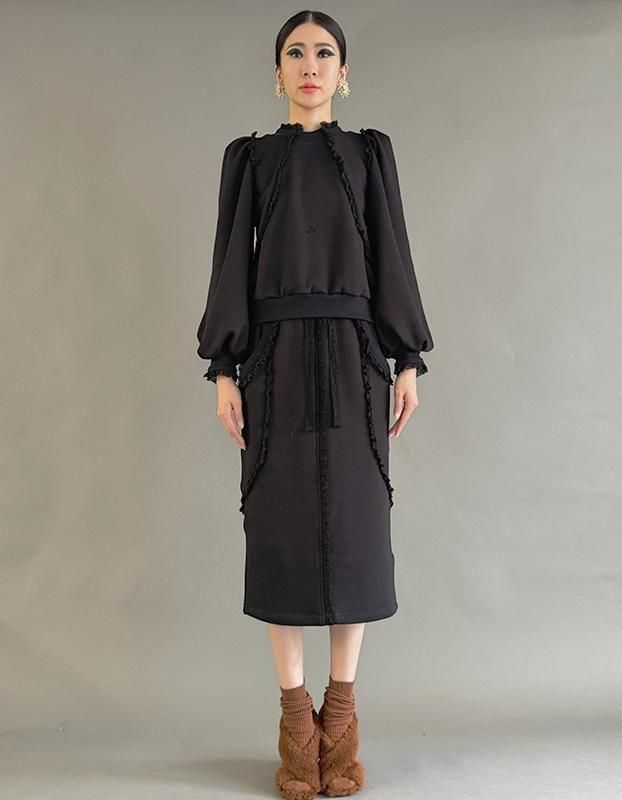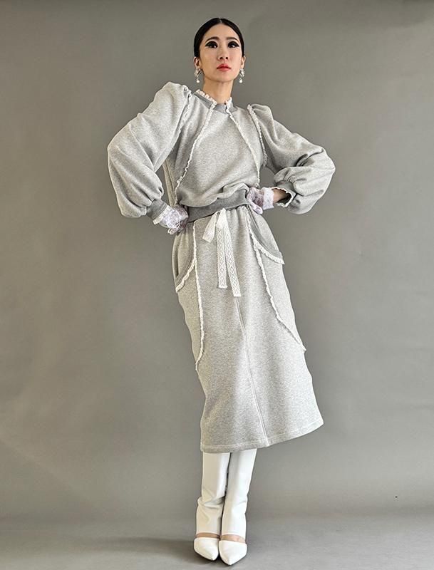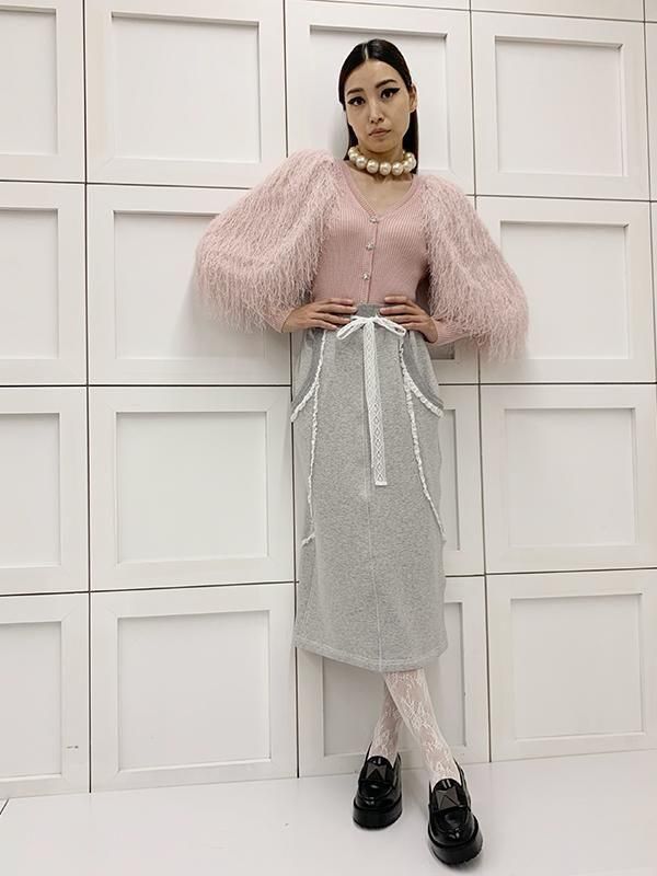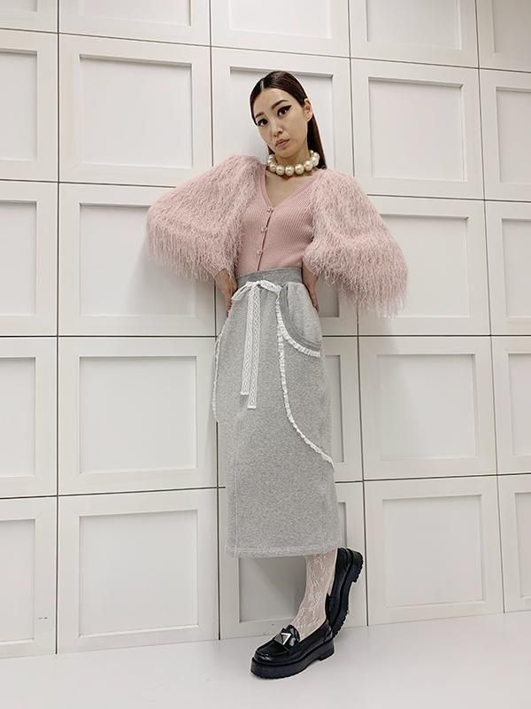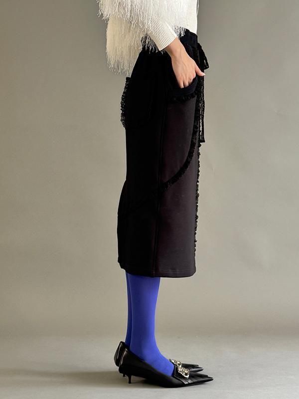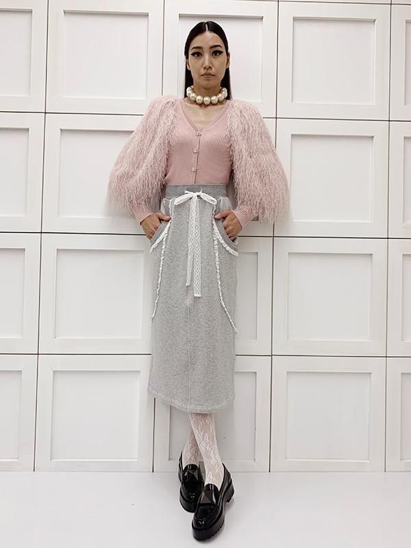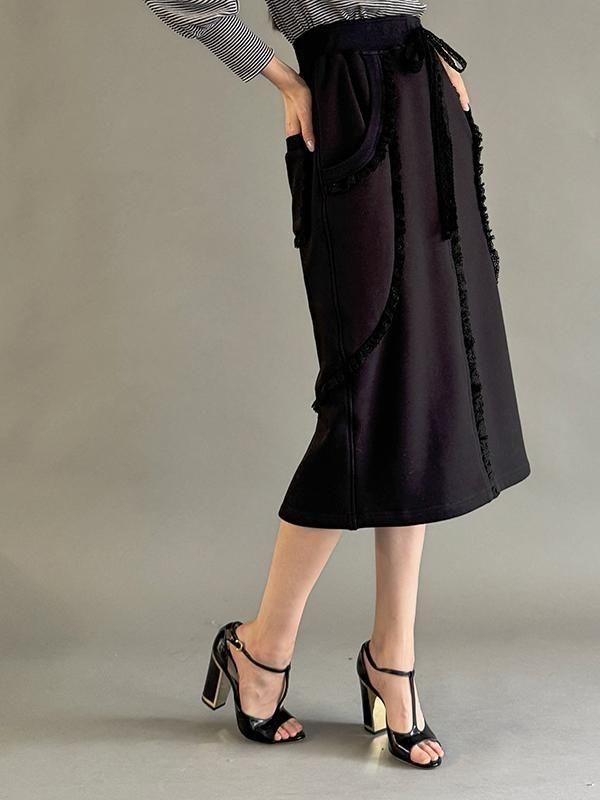 ベーシックになりがちなスウェットも、ウエストやポケット回りのレースデザインでぐっとフェミニンに。