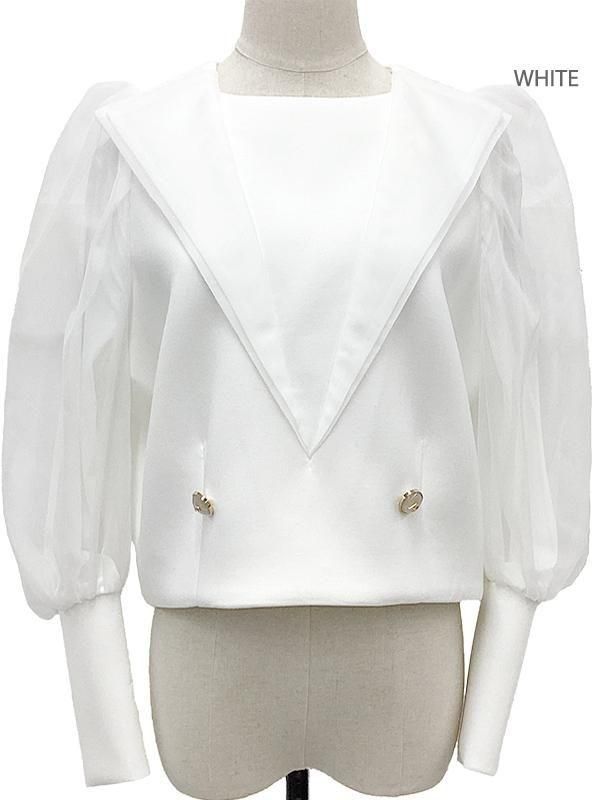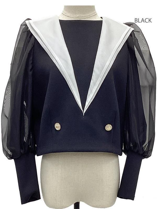 ハリ感と柔らかさを併せ持つボンディング素材を使用したセーラーカラーのプルオーバーです。
