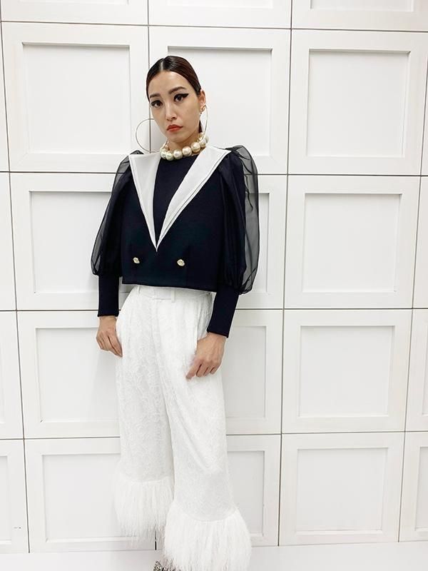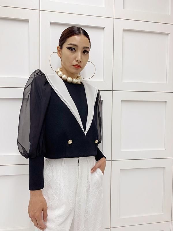 こなれた印象を演出しながら、セーラーカラーのディテールで可愛さもプラス。
