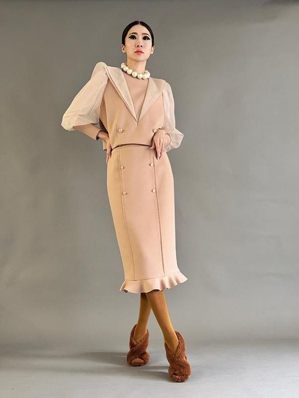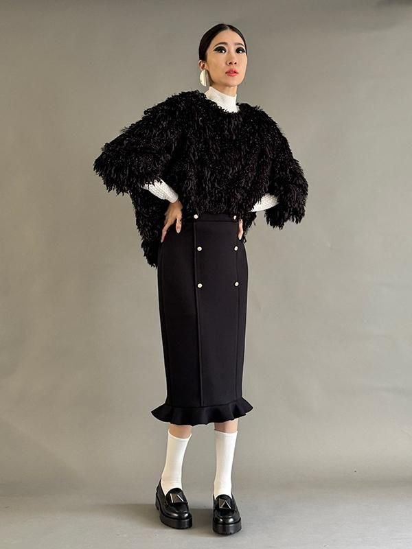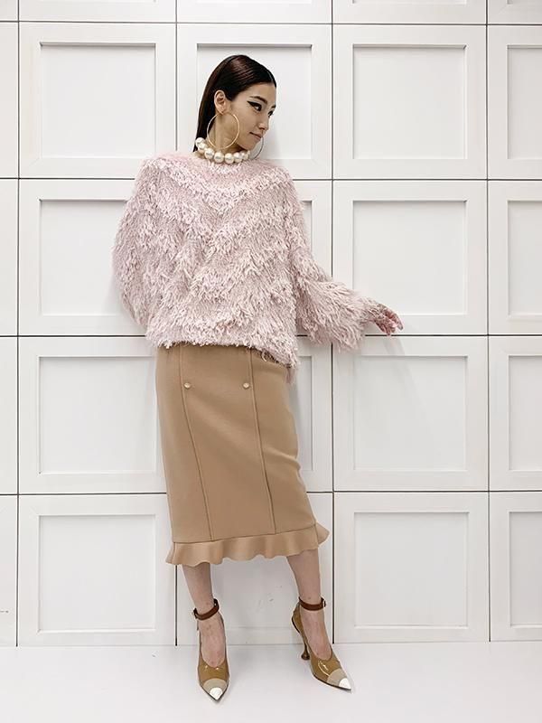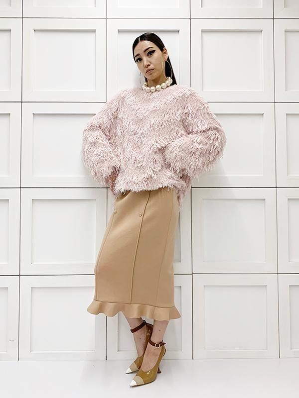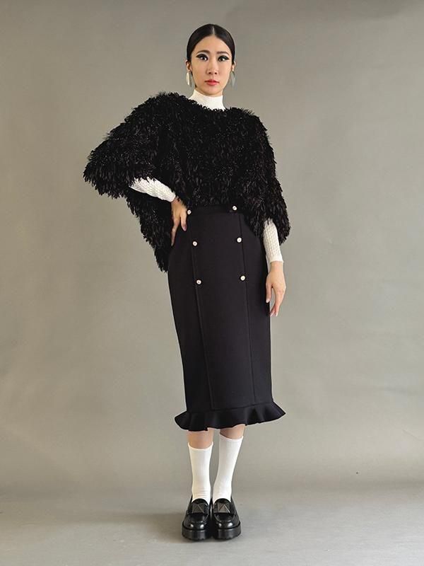 ハリ感と柔らかさを併せ持つボンディング素材を使用したマーメイドシルエットのタイトスカートです。