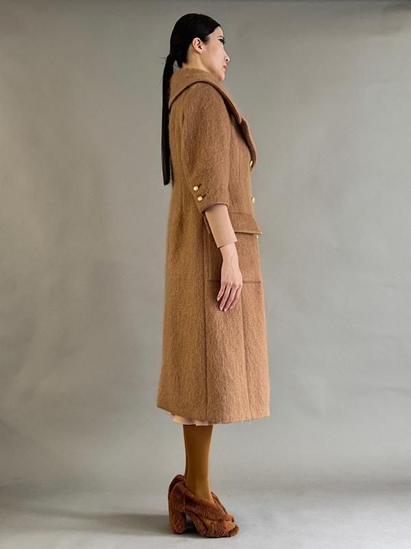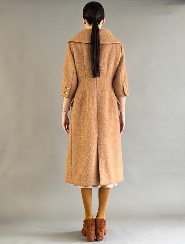 ウールにモヘヤをブレンドした素材は、軽さとふわふわの肌触り、そして毛足のある表情豊かな風合いが特徴。