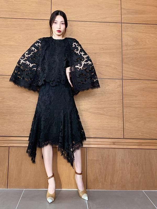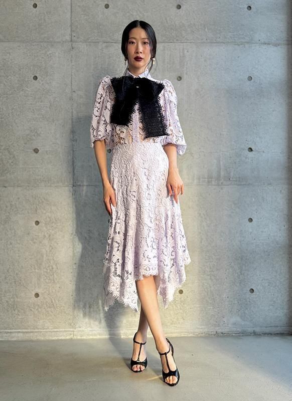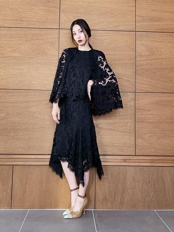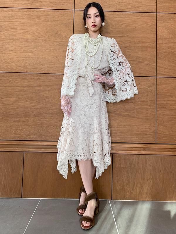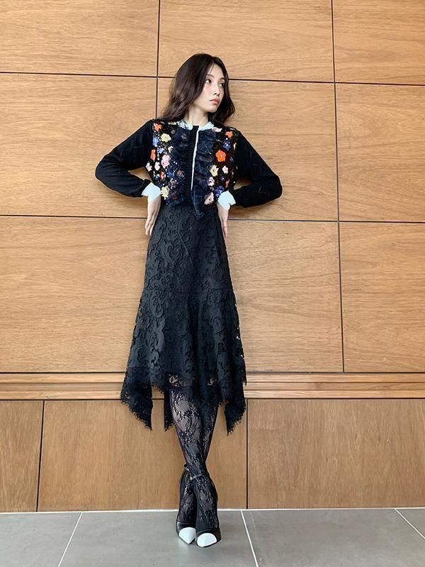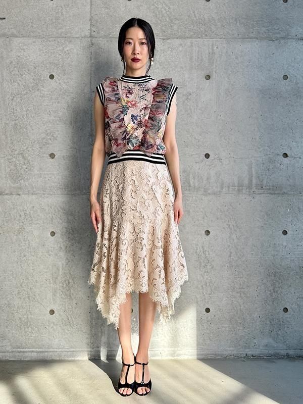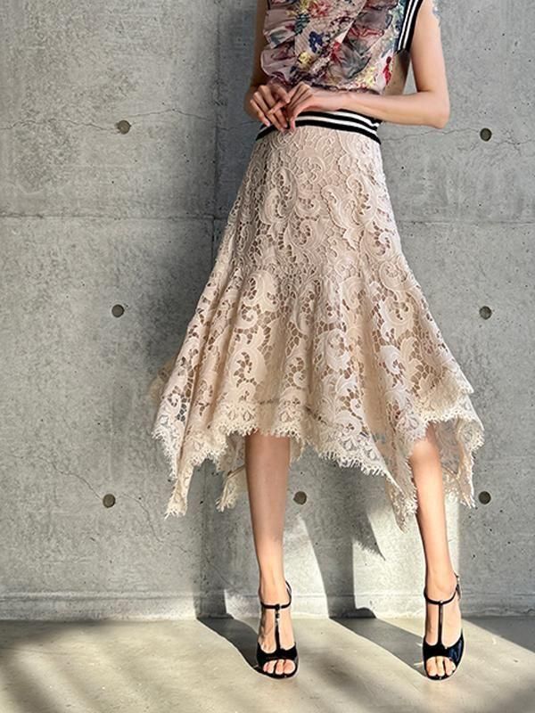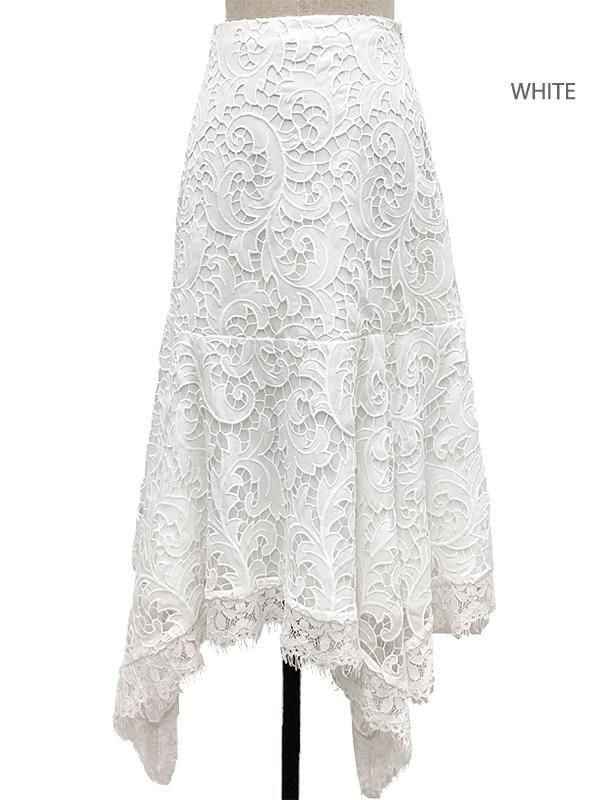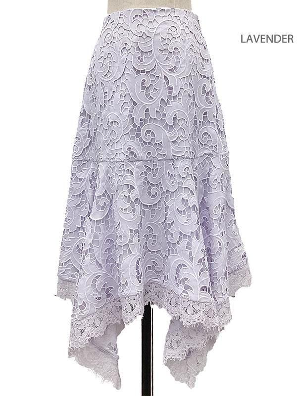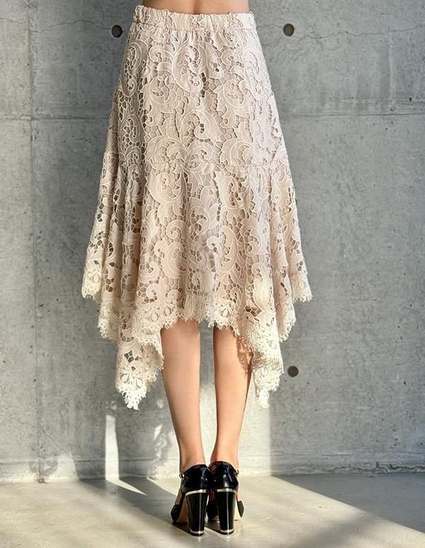 エンブロイダリーレースが美しく、ランダムな動きが生まれるエレガントなスカートです。